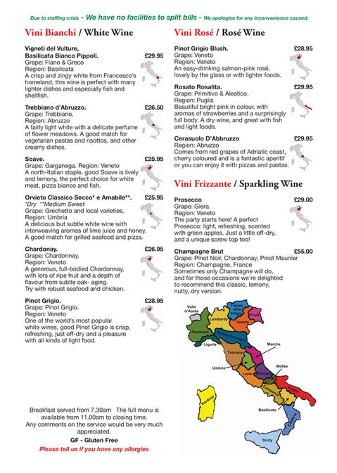 Takeaway orders over £100 include a free bottle of White, Red or Rosé Wine.